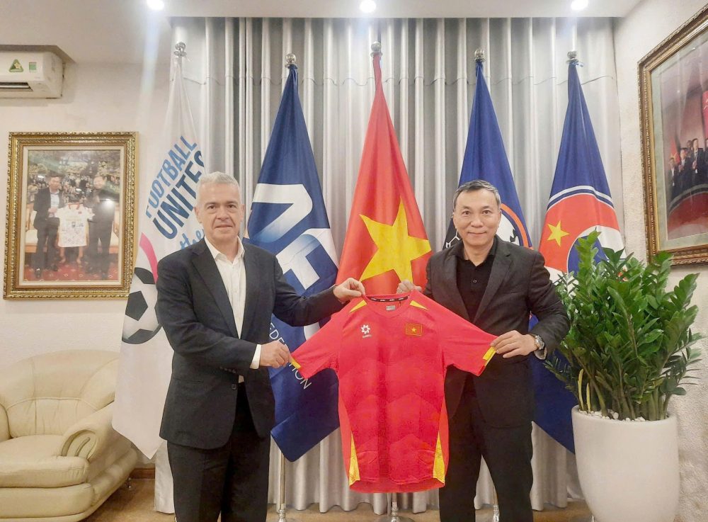 Welcome the FIFA delegation – Mr. Theodore Giannikos, Director of the FIFA Strategic Project, was joined by VFF’s President Trần Quốc Tuấn was joined by Mr. Nguyễn Văn Phú – VFF’s General Secretary; Mr. Nguyễn Minh Châu, Deputy General Secretary of VFF; and Mrs. Nguyễn Thanh Hà, Deputy General Secretary of VFF.