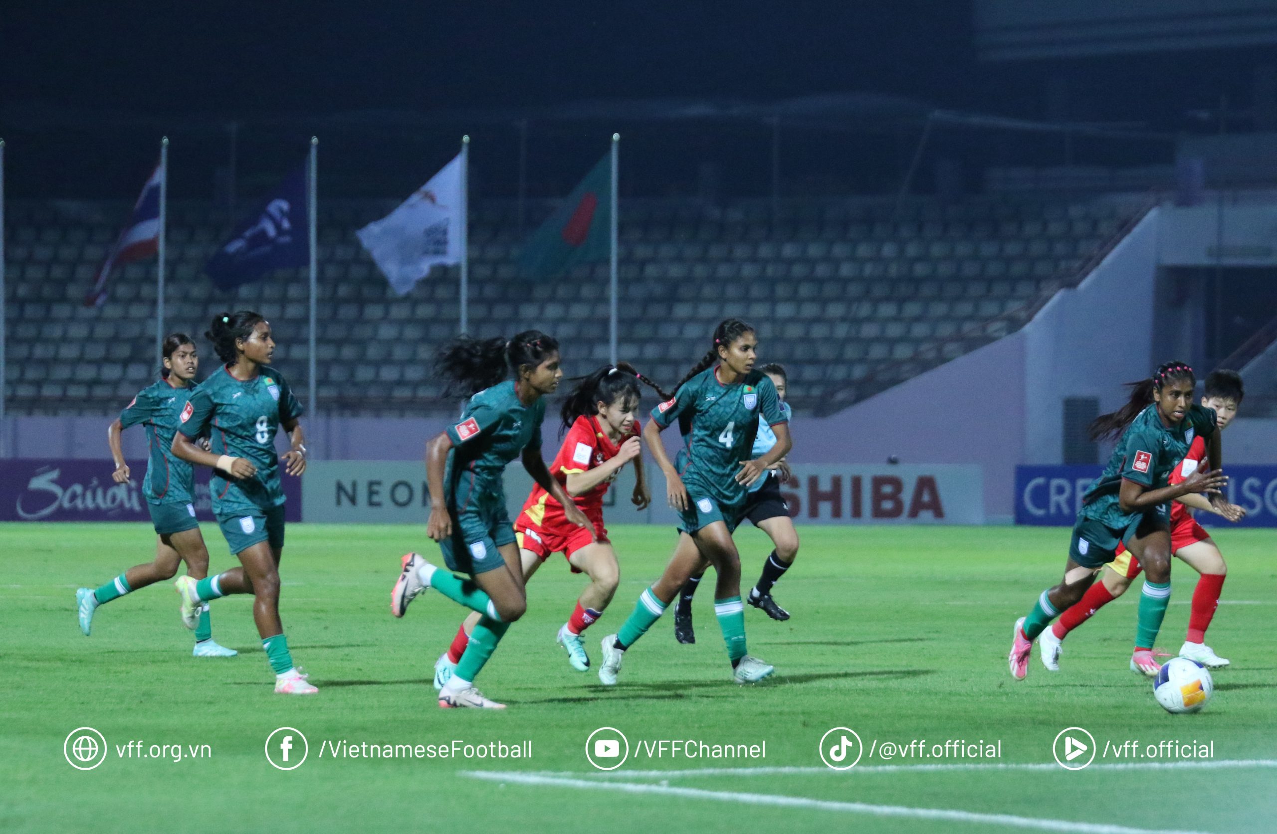 Bangladesh also tried to make their presence felt in the eighth minute when Umehla Marma beat Nguyen Thi Thuy Linh on the left to find her way into the box, but her effort was swiftly blocked by defender Nguyen Thi Thuong.