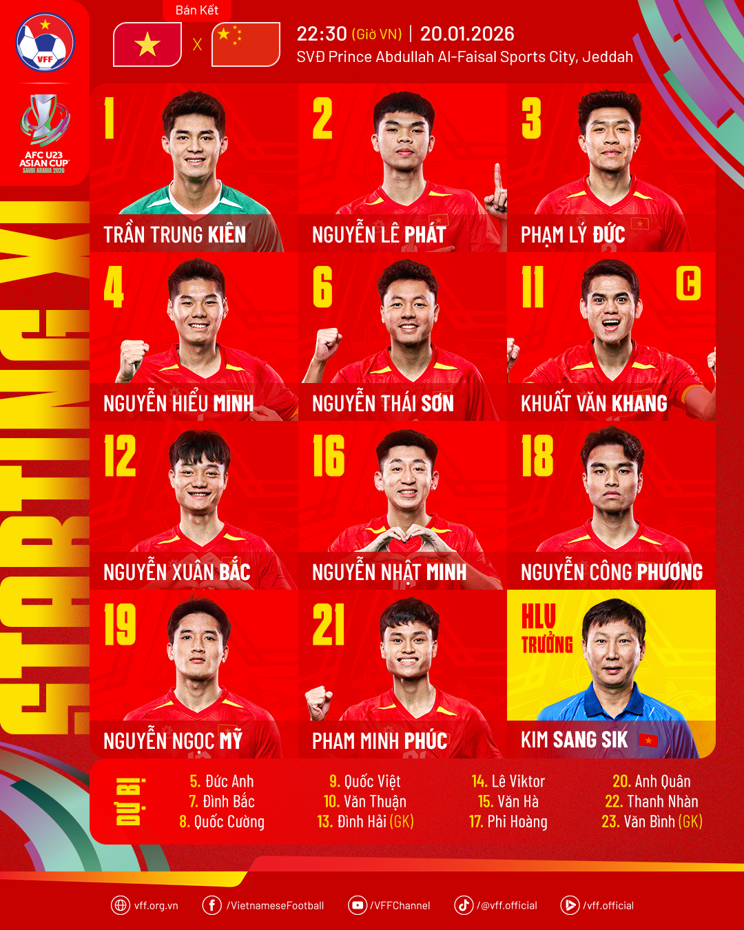 U23 Vietnam were unable to continue their heroic run at the AFC U23 Asian Cup 2026 after suffering a 0–3 defeat to U23 China in the semifinal on the evening of January 20, and will now face U23 Korea in the third-place playoff.