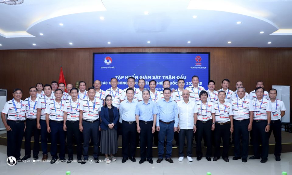On the morning of September 11th, after three days of intensive and rigorous work, the training program for match officials of the National Professional Football Leagues for the 2024/25 season officially concluded at the headquarters of the Vietnam Football Federation (VFF). VFF Vice President Tran Anh Tu and VFF Secretary General Duong Nghiep Khoi attended the event and delivered speeches providing guidance.