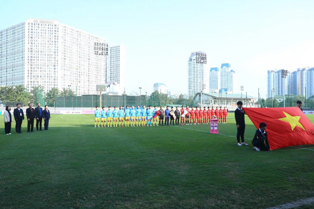 Attending the opening ceremony were Mr. Nguyen Xuan Vu, Vice President of the Vietnam Football Federation (VFF); Mr. Nguyen Quoc Hoi, Standing Member of the VFF Executive Committee; Mr. Mai Duc Chung, Vice Chairman of the National Coaches Council and Head Coach of the Vietnam Women’s National Team; Mr. Tran Huy Duc, Member of the Executive Committee and Deputy Head of the VFF Women’s Football Department; Mr. Hoang Anh Tuan, Member of the VFF Referees Committee; Mr. Okiyama Masahiko, Head Coach of the Vietnam U16 Women’s National Team and expert in charge of youth women’s football development; Ms. Nguyen Thanh Ha, Deputy General Secretary of the VFF and Head of the Organizing Committee; and Ms. Tran Thi Bich Lien, Deputy Director of the Vietnam Youth Football Training Center, the host venue for the first leg of the tournament.