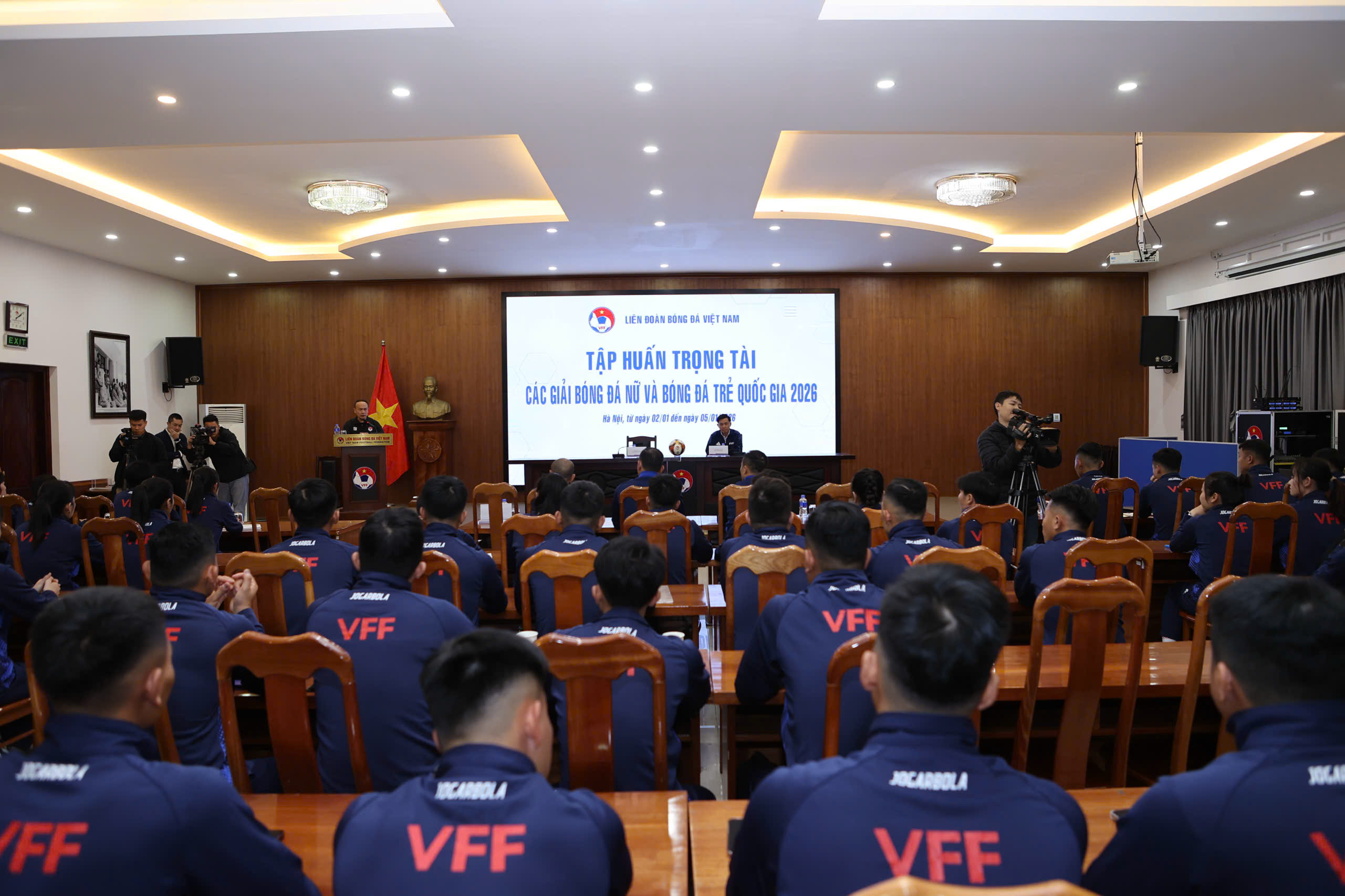 On the afternoon of January 2, 2026, the Vietnam Football Federation (VFF) held the opening ceremony of the referees’ training course for officials assigned to officiate at the 2026 national women’s football and youth football competitions. The opening ceremony was attended by Mr. Nguyen Van Phu, General Secretary of the VFF, and Mr. Dang Thanh Ha, Chairman of the VFF Arbitration Committee.