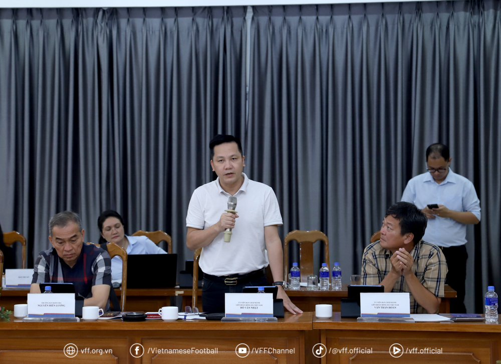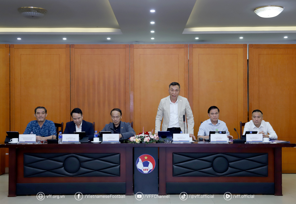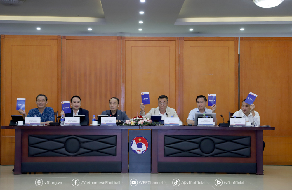 In attendance at the meeting, representing the Vietnam Sports Administration was Vice Director General Nguyen Hong Minh. Representing the VFF were President Tran Quoc Tuấn, the Vice Presidents, Standing Members of the Executive Committee, and Executive Committee Members. Also present were the Chairs of the VFF Inspection Committee, Disciplinary Committee, and Appeals Committee, as well as the General Secretariat, leaders of VPF and its subsidiaries, and Heads/Deputy Heads of VFF functional departments.