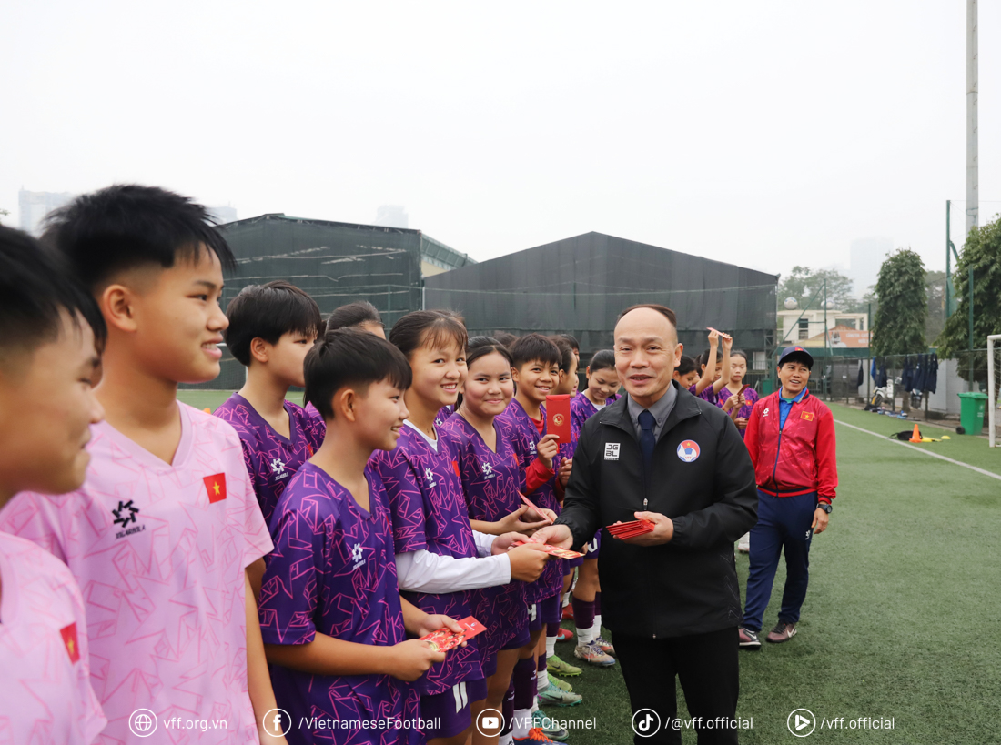 Encouraging the two women’s youth national team squads, VFF General Secretary Nguyen Van Phu acknowledged the players’ efforts and their serious training spirit over the past period. He also expressed his expectation that they would follow in the footsteps of their senior players, who are currently competing, training internationally, and preparing for major continental tournaments.