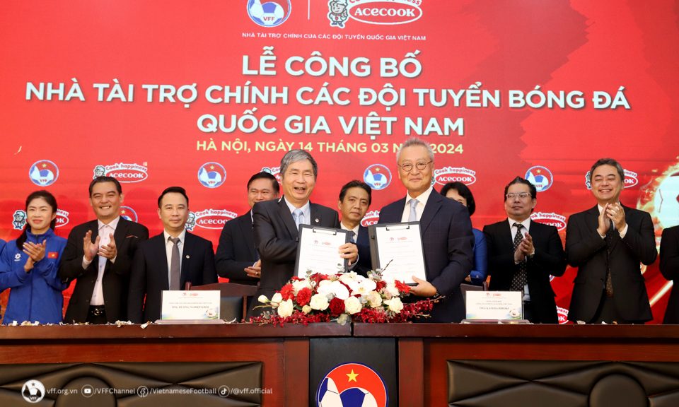 After 6 consecutive years of being with Vietnamese football as a Sponsor of Vietnam National Teams and a number of tournaments for youth football, on a new companion stage for the period 2024 – 2027, Acecook Joint Stock Company Vietnam has decided to upgrade the sponsorship package of Vietnamese national teams to the highest level of the Top Star Partner package. The signing ceremony and announcement of this remarkable event was solemnly held on the morning of March 14 at the headquarters of VFF.