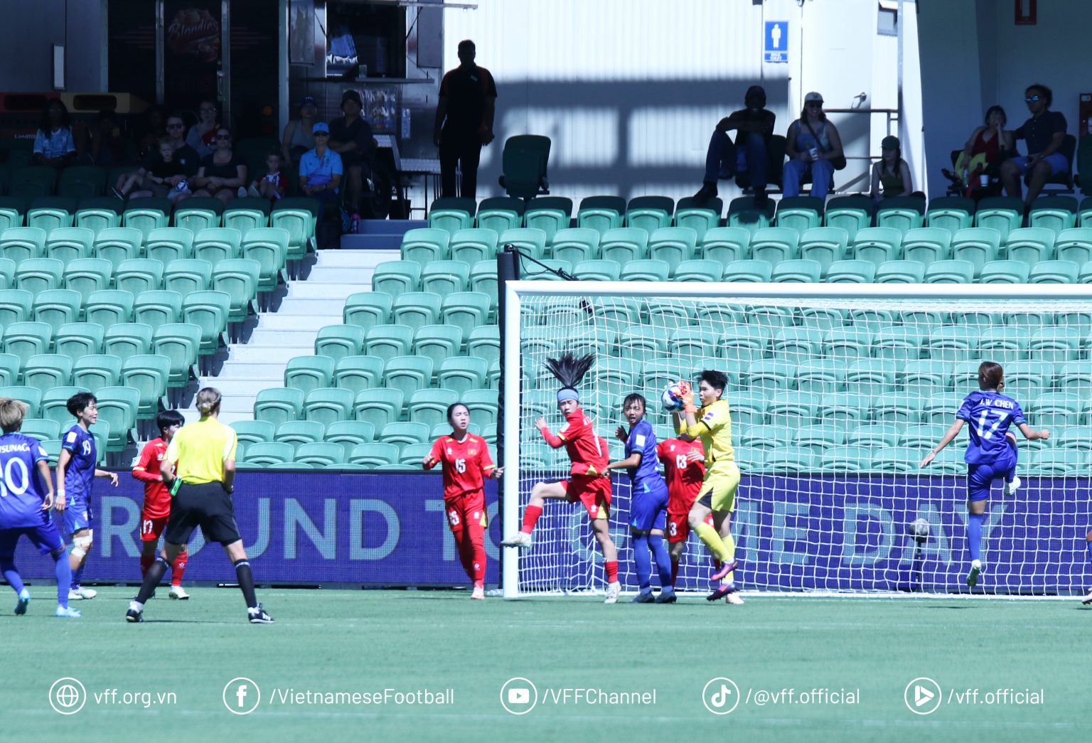 During the first half, despite creating some clear opportunities, the players of the Vietnam women’s national football team were unable to break through the opponent’s defense to find an equalizer. Notably, in first-half stoppage time, goalkeeper Tran Thi Kim Thanh made an excellent save to deny another attempt from the opponents, keeping the score at 1–0.